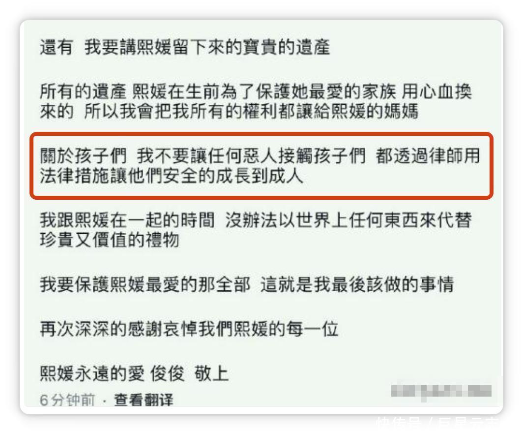 具俊晔爱大S,也希望她安息,最该做是让两个孩子回到父亲身边,而不是受S家影响,让孩子成为S家筹码。